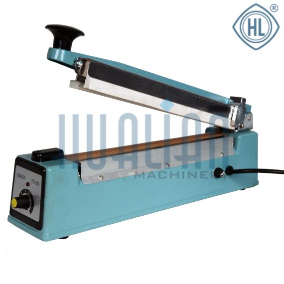 Импульсный Запайщик настольный (ручной) с функцией обрезки. Длина шва до 300мм, ширина 2.5-3мм. Металлический корпус. Боковой механический нож при необходимости обрезает излишки пакета с отступом от шва. Запайщик применим для запайки пакетов на мелких производствах, а так же в быту.