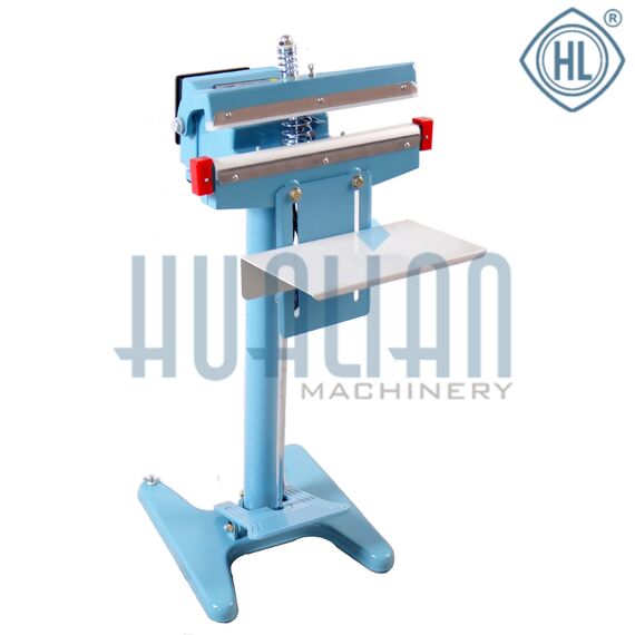 Ножной запайщик с двойным нагревом педального типа серии PFS (усиленный). Данный запайщик имеет длину запайки 350мм. Особенностью конструкции является двойной нагрев (и верхняя и нижняя планки имеют нагревательный элемент) что позволяет работать с любыми по толщине и составу термосвариваемыми материалами, а так же пыльными пакетами. Двойной нагрев обеспечивает качественную проварку шва шириной 8мм с обеих сторон пакета. Корпус запайщика выполнен из окрашенного металла и отличается надежной сборкой. Запайка происходит при нажатии на педаль. Запайщик так же оснащен реле времени запайки.