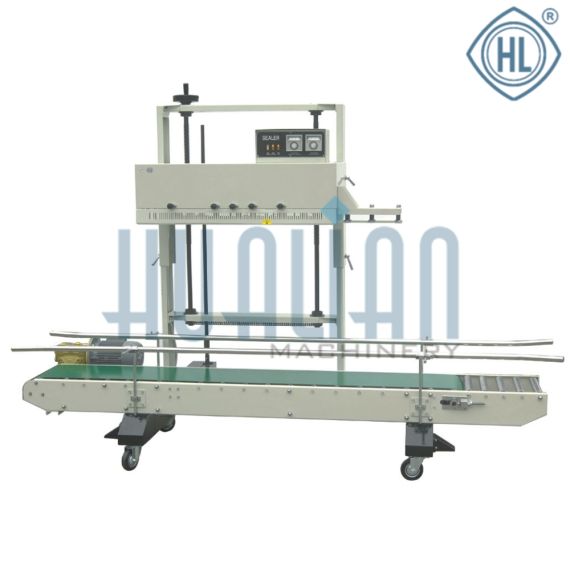 Автоматический роликовый запайщик вертикального типа FR-1370AL/L предназначен для упаковки тяжелых пакетов весом около 20 кг. Он оборудован широким конвейером и поддерживающими перилами, что позволяет запаивать горловину крупногабаритных и высоких пакетов. Максимальная высота пакета 900 мм, минимальная – 450 мм, пакеты само собой подаются в вертикальном положении, направление движения – справа налево. Скорость конвейера постоянная, температура запайки устанавливается посредством температурного контроллера. Так как в конструкции применено сразу четыре нагревающих блока, запайщик способен запаивать даже очень плотные и запыленные материалы. При необходимости аппарат позволяет проставлять дату в шве пакета в две строки. Если необходимости в маркировании нет, эта опция легко отключается на панели управления. Оборудование может быть поставлено как в крашеном, так и в нержавеющем корпусе.