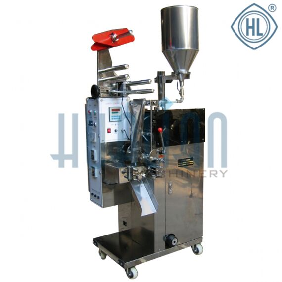 Фасовочно-упаковочная машина применяется для дозирования и упаковки жидких текучих продуктов каких как, соусы, уксус, медицинские растворы и т.д. Дозирование продукта происходит за счет собственного веса, жидкость из расходного бункера через электромагнитный клапан попадает в пакет, пакет запаивается. Данная модель может упаковывать продукт в разнообразные по форме пакеты (по выбору заказчика), диапазон дозирования и размеры пакеты ограничены. Машина работает только от электрической сети 220 В, воздушный компрессор не нужен.