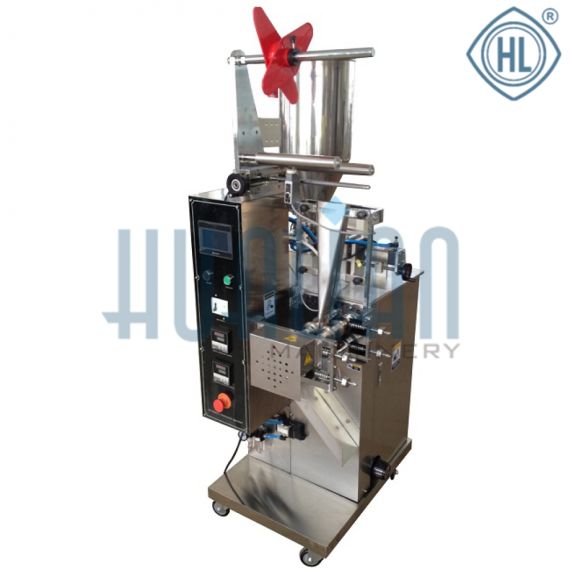 Вертикальный автоматический фасовщик DXDG-50II применяется для мелко-порционной фасовки жидких и пастообразных продуктов различной вязкости, например: майонеза, кетчупа, различных соусов, меда, шампуней, кремов, жидкого мыла и пр. Может поставляться в различных комплектациях в зависимости от фасуемого продукта и параметров пакета, опции: подогрев бункера, мешалка бункера, датер, насечка для легкого открытия, пробивка евро-отверстия, четырех-шовный саше-пакет и пр. Данное оборудование практически всегда есть в наличии. За дозировку продукта отвечает дозирующий пневмоцилиндр, поэтому для работы оборудования дополнительно требуется воздушный компрессор небольшой мощности. Вввод параметров автомата производится через электронный тач-скрин, а контролирует работу аппарата современный японский PLC-контроллер.