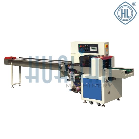 Машина предназначена для упаковки продуктов правильной форм: печенья , хлеба, не пищевых продуктов, для упаковки сыпучих продуктов их нужно предварительно поместить в подложку или коррекс. Максимальный размер полотна упаковочной пленки 350 мм. Отличительной особенностью данной модели является конструкция поперечных запаивателей. Запаиватели совершают возвратно поступательное движение вдоль движения продукта, что позволяет упаковывать высокие продукты, исключается контакт нагревателей и продукта. Тем самым повышается качество упаковки. В машине используется раздельный сервопривод подачи пленки и поперечной запайки. Управление упаковщиком происходит через интерфейс PLC-контроллера. Для контроля температуры применяются контроллеры с ПИД регулированием, что позволяет очень точно контролировать температуру запайки пакета. Дополнительно возможно укомплектовать машину термодатером, этикетировочной машиной, корпусом из нержавеющей стали и т.д.