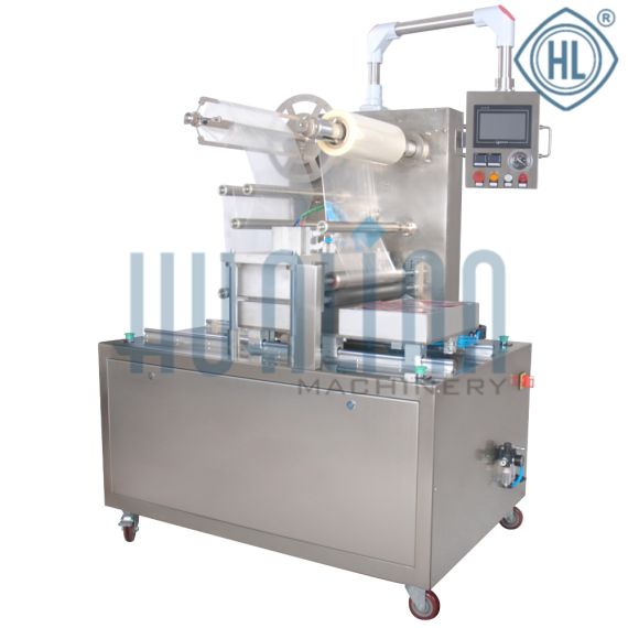 Данный трейсилер предназначен для запайки в готовые лотки разнообразной продукции. Благодаря применению газомодифицированной смеси удается значительно увеличить срок годности упакованного продукта. Принцип работы по типу двухкамерного вакуумника с перекидной крышкой – пока оператор загружает лотки в матрицу, другая матрица уже перемещается в упаковочную камеру, и так по кругу. Максимальная ширина пленки 550 мм, соответственно размеры рабочей зоны 550х600 мм. При необходимости работы с несколькими размерами лотка необходимо дополнительно приобрести сменный комплект матриц. Для аппарата предусмотрены опции уголка для легкого открытия, датирующего устройства, этикетировщика и т.д.