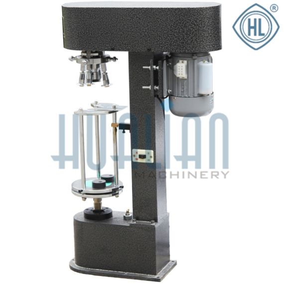 Полуавтоматическая машина для укупорки (закручивания) металлического колпачка на стеклянную бутылку. Данная машинка представляет собой простой станок, состоящий из регулируемой подставки с упором для бутылки, электропривод, завинчивающая головка. Аппарат предназначен для накручивания металлического колпачка (со стопорным кольцом) на горлышко при этом надавливая резьбу в соответствие с рисунком винта горлышка бутылки. Процесс завинчивания 3-5 секунд, при необходимости можно прогнать по второму кругу.