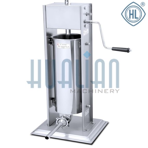 Вертикальный колбасный шприц TV-7L предназначен для быстрого изготовления колбасных изделий, паштетов и других продуктов в оболочке из натурального или искусственного сырья. Объем загрузочного бункера – 7 л.
