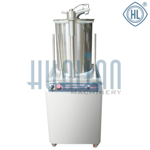 Колбасный шприц SF-150 с гидравлическим приводом – профессиональное оборудование для мясоперерабатывающих цехов, предприятий общественного питания и ритейла, специализирующихся на выпуске мясных и других полуфабрикатов в оболочке в промышленных масштабах. Выход готового продукта составляет 280 кг/час.