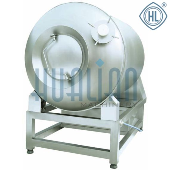 Для высокопроизводительных цехов, мясоперерабатывающих заводов и крупных заготовительных предприятий, мы предлагаем рассмотреть модель вакуумного массажера GR- 3500. Эти аппараты отличаются большим объемом рабочей емкости до 3500л, при этом загрузка по продукту составляет до 2200 кг. Как и все представленные аппараты, массажер cостоит из опрокидывающейся емкости с двумя откидными крышками, установленной на станине. Куски мяса помещаются в емкость, в которой создается вакуум при помощи вакуумного насоса. Массирование происходит за счет перемещения мяса внутри барабана с лопастями. Массирование посоленного кускового сырья достигается путем взаимного перемещения продукта относительно друг друга и стенок сосуда
