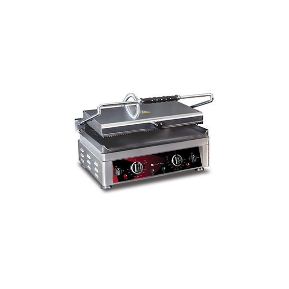 640х605х300 мм, 230В, 3+3 кВт, верхняя поверхность рифленая (R), нижняя поверхность гладкая (S), чугун, размер поверхности 600х400 мм, термостат 50- 300C, независимая регулировка температуры нижней и верхней поверхности (DT), корпус из нержавеющей стали, емкость для сбора жира