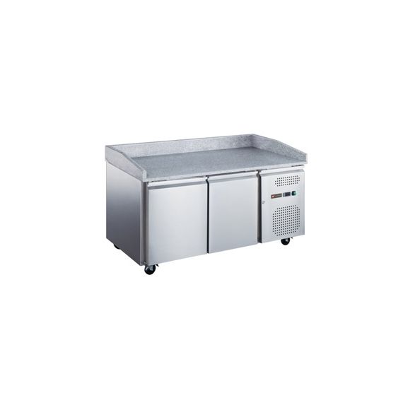 1510x800x1000 мм, 230В, 0,215 кВт, 390 л, -2…+8 C, каменная столешница с 3 бортами, 2 двери, полки 600х400, одна полка для каждой двери в комплекте, боковое расположение холодильного агрегата, динамическое охлаждение, на колесах