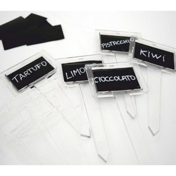 5 прозрачных указателей вкуса с черной подложкой. Размеры: 90х60 мм, длина 185 мм. Состав: пластик пищевой ПММА