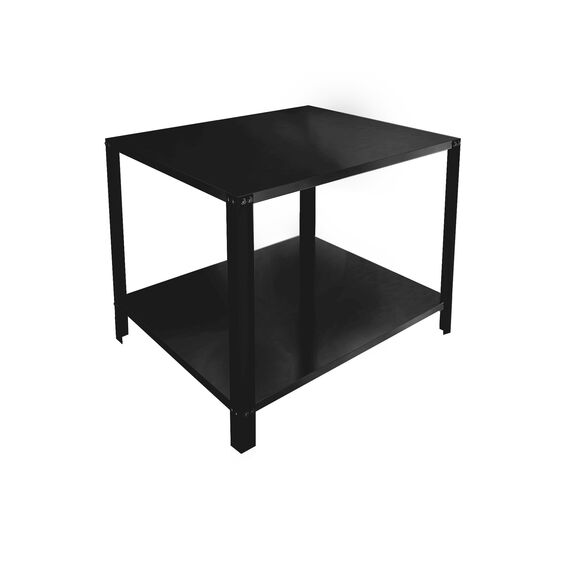 1010х850х980мм, толщина стали 2 мм. Порошковая покраска RAL 9005 (черный). Нагрузка 140кг на полку и на столешницу. Суммарная нагрузка 280 кг на подставку.