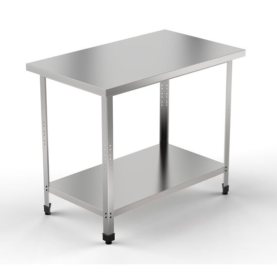 1000х600х850мм, Стол производственный островной серия Стандарт+, подложка ЛДСП 16 мм, столешница: нерж. сталь марки AISI 430, толщина 0,8 мм, каркас разборный, нержавеющий уголок 1,5 мм, сплошная полка - нерж. сталь марки AISI 430, толщина 0,8 мм