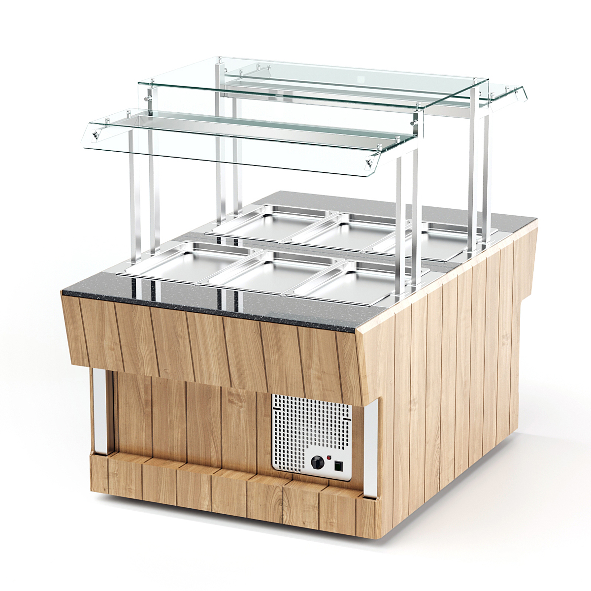 Мармит для вторых блюд относится к Шведским столам «Kids» торговой марки «Refettorio». Мармит предназначен для кратковременного хранения в горячем состоянии вторых блюд в функциональных емкостях и раздачи их потребителю. Исполнение - сдвоенное. Столешница из искусственного камня. Теплоноситель паровой. Тип электронагревательного устройства -пластинчатый электронагреватель (ПЭН). Мармит оснащён стеклянными полками. Максимальная распределенная нагрузка на полку 10кг. Имеет светодиодную подсветку в нише фасадной части и подсветку рабочей зоны. Может комплектоваться столешницами-вставками (доп. опция). В стандартный комплект поставки фасады и гастроёмкости не входят (доп. опция).