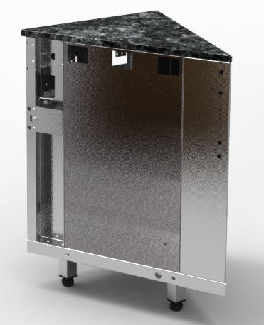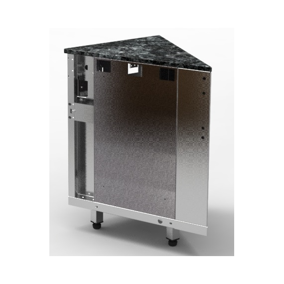Прилавок нейтральный угловой внешний относится к линии раздачи «Kids» торговой марки «Refettorio». Используется для удобства комплектации модулей под углом 45 градусов в линию прилавков, является промежуточным вспомогательным элементом. Столешница из искусственного камня. Имеет светодиодную подсветку в нише фасадной части. В стандартный комплект поставки направляющая и фасады не входят (доп. опция).