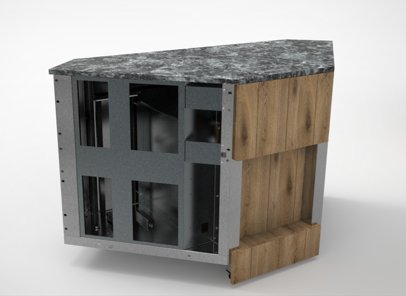 Прилавок нейтральный угловой внутренний относится к линии раздачи «Kids» торговой марки «Refettorio». Используется для удобства комплектации модулей под углом 90 градусов в линию прилавков, является промежуточным вспомогательным элементом. Столешница из искусственного камня. Имеет светодиодную подсветку в нише фасадной части. Со стороны персонала в прилавке есть ниша для инвентаря и розетки с защитной крышкой. Как дополнительная опция ниша может быть снабжена створчатой дверкой. В стандартный комплект поставки фасады не входят (доп. опция).
