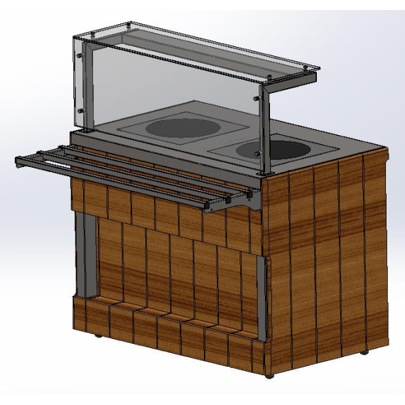 Прилавок тепловой с индукционными конфорками относится к линии раздачи «Kids» торговой марки «Refettorio». Прилавок предназначен для длительного поддержания в горячем состоянии пищи и тепловой обработки пищевых полуфабрикатов в специально разработанных для индукционных плит функциональных емкостях и, используется в качестве вспомогательного модуля. Столешница из искусственного камня. Мощность одной конфорки - 3,5 кВт. Количество конфорок в прилавке - 1шт. Оснащен полкой и защитным стеклом. Максимальная распределенная нагрузка на стеклянную полку 15кг. Имеет светодиодную подсветку в нише фасадной части и подсветку рабочей зоны. Со стороны персонала в прилавке есть ниша для инвентаря и розетки с защитной крышкой. Как дополнительная опция ниша может быть снабжена створчатой дверкой. В стандартный комплект поставки направляющая и фасады не входят (доп. опция). Ширина прилавка, указанная в ее наименовании, не учитывает ширину фасадов. Полный габаритный размер по ширине указан в чертеже общего вида прилавка.