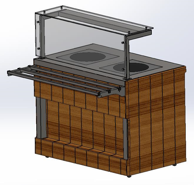 Прилавок тепловой с индукционными конфорками относится к линии раздачи «Kids» торговой марки «Refettorio». Прилавок предназначен для длительного поддержания в горячем состоянии пищи и тепловой обработки пищевых полуфабрикатов в специально разработанных для индукционных плит функциональных емкостях и, используется в качестве вспомогательного модуля. Столешница из искусственного камня. Мощность одной конфорки - 3,5 кВт. Количество конфорок в прилавке - 2шт. Оснащен полкой и защитным стеклом. Максимальная распределенная нагрузка на стеклянную полку 15кг. Имеет светодиодную подсветку в нише фасадной части и подсветку рабочей зоны. Со стороны персонала в прилавке есть ниша для инвентаря и розетки с защитной крышкой. Как дополнительная опция ниша может быть снабжена створчатой дверкой. В стандартный комплект поставки направляющая и фасады не входят (доп. опция). Ширина прилавка, указанная в ее наименовании, не учитывает ширину фасадов. Полный габаритный размер по ширине указан в чертеже общего вида прилавка.