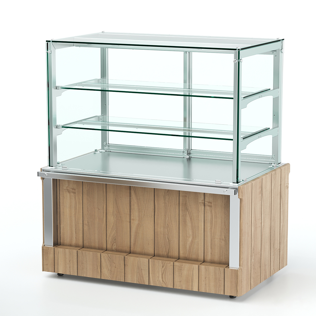 Витрина кондитерская нейтральная закрытая относится к линии раздачи «Kids» торговой марки «Refettorio». Витрина с внутренним объемом закрытого доступа к продуктам, предназначена для эффектной демонстрации и временного хранения кондитерских изделий и десертов. Столешница из нержавеющей стали. Размещение пищевых продуктов полочное трёхъярусное, включая дно полезного объёма. Доступ к продуктам со стороны рабочего персонала осуществляется с помощью раздвижных створок витрины, со стороны потребителя доступ к продуктам отсутствует. Максимальная распределенная нагрузка на стеклянную полку 15кг. Имеет освещение рабочей зоны над каждой полкой. В стандартный комплект поставки фасады не входят (доп. опция).