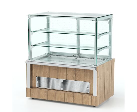 Витрина кондитерская холодильная закрытая относится к линии раздачи «Kids» торговой марки «Refettorio». Витрина с охлаждаемой столешницей и внутренним охлаждаемым объемом закрытого доступа к продуктам, предназначена для эффектной демонстрации и временного хранения кондитерских изделий и десертов. Столешница из искусственного камня. Класс - высокотемпературный (от 1° до 10°). Тип оттаивания - автоматический. Холообеспечение встроенное. Размещение пищевых продуктов полочное трёхъярусное, включая дно полезного объёма. Доступ к продуктам со стороны рабочего персонала осуществляется с помощью раздвижных створок витрины, со стороны потребителя доступ к продуктам отсутствует. Максимальная распределенная нагрузка на стеклянную полку 15кг. Имеет освещение рабочей зоны над каждой полкой. В стандартный комплект поставки фасады не входят (доп. опция). Ширина витрины, указанная в ее наименовании, не учитывает ширину фасадов. Полный габаритный размер по ширине указан в чертеже общего вида витрины.