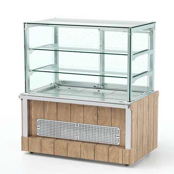 Витрина кондитерская холодильная закрытая относится к линии раздачи «Kids» торговой марки «Refettorio». Витрина с охлаждаемой столешницей и внутренним охлаждаемым объемом закрытого доступа к продуктам, предназначена для эффектной демонстрации и временного хранения кондитерских изделий и десертов. Столешница из искусственного камня. Класс - высокотемпературный (от 1° до 10°). Тип оттаивания - автоматический. Холообеспечение встроенное. Размещение пищевых продуктов полочное трёхъярусное, включая дно полезного объёма. Доступ к продуктам со стороны рабочего персонала осуществляется с помощью раздвижных створок витрины, со стороны потребителя доступ к продуктам отсутствует. Максимальная распределенная нагрузка на стеклянную полку 15кг. Имеет освещение рабочей зоны над каждой полкой. В стандартный комплект поставки фасады не входят (доп. опция). Ширина витрины, указанная в ее наименовании, не учитывает ширину фасадов. Полный габаритный размер по ширине указан в чертеже общего вида витрины.