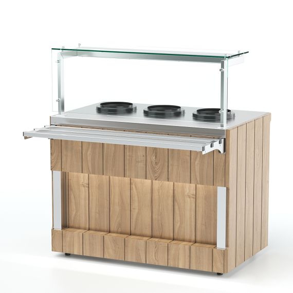 Мармит для первых блюд с электросупницами относится к линии раздачи «Kids» торговой марки «Refettorio». Мармит предназначен для поддержания в горячем состоянии емкостей с первыми блюдами и раздачи их потребителю. Столешница из нержавеющей стали. Вместимость супницы - 5 литров. Электросупницы - 2шт. Терморегулятор от 0 до 95С°. Мармит оснащен полкой и защитными стеклами. Максимальная распределенная нагрузка на стеклянную полку 15кг. Имеет светодиодную подсветку в нише фасадной части и подсветку рабочей зоны. Со стороны персонала в мармите есть ниша для инвентаря и розетки с защитной крышкой. Как дополнительная опция ниша может быть снабжена створчатой дверкой. В стандартный комплект поставки направляющая и фасады не входят (доп. опция).