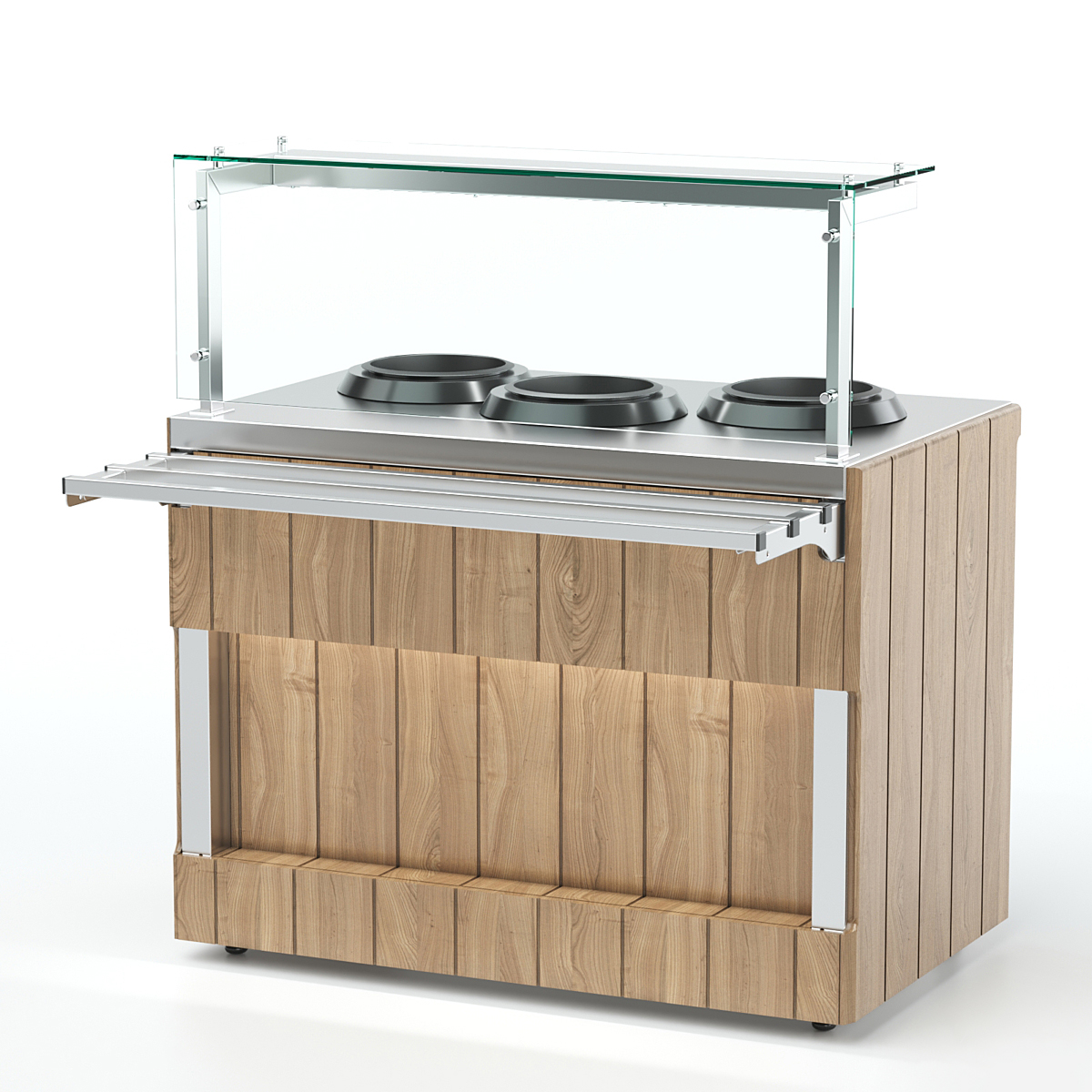 Мармит для первых блюд с электросупницами относится к линии раздачи «Kids» торговой марки «Refettorio». Мармит предназначен для поддержания в горячем состоянии емкостей с первыми блюдами и раздачи их потребителю. Столешница из нержавеющей стали. Вместимость супницы - 10 литров. Электросупницы - 3шт. Терморегулятор от 0 до 95С°. Мармит оснащен полкой и защитными стеклами. Максимальная распределенная нагрузка на стеклянную полку 15кг. Имеет светодиодную подсветку в нише фасадной части и подсветку рабочей зоны. Со стороны персонала в мармите есть ниша для инвентаря и розетки с защитной крышкой. Как дополнительная опция ниша может быть снабжена створчатой дверкой. В стандартный комплект поставки направляющая и фасады не входят (доп. опция).