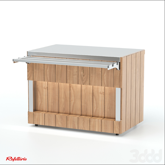 Прилавок нейтральный относится к линии раздачи «Kids» торговой марки «Refettorio». Прилавок используется в качестве вспомогательного элемента. Столешница из нержавеющей стали. Имеет светодиодную подсветку в нише фасадной части. Со стороны персонала в прилавке есть ниша для инвентаря и розетки с защитной крышкой. Как дополнительная опция ниша может быть снабжена створчатой дверкой. В стандартный комплект поставки направляющая и фасады не входят (доп. опция).