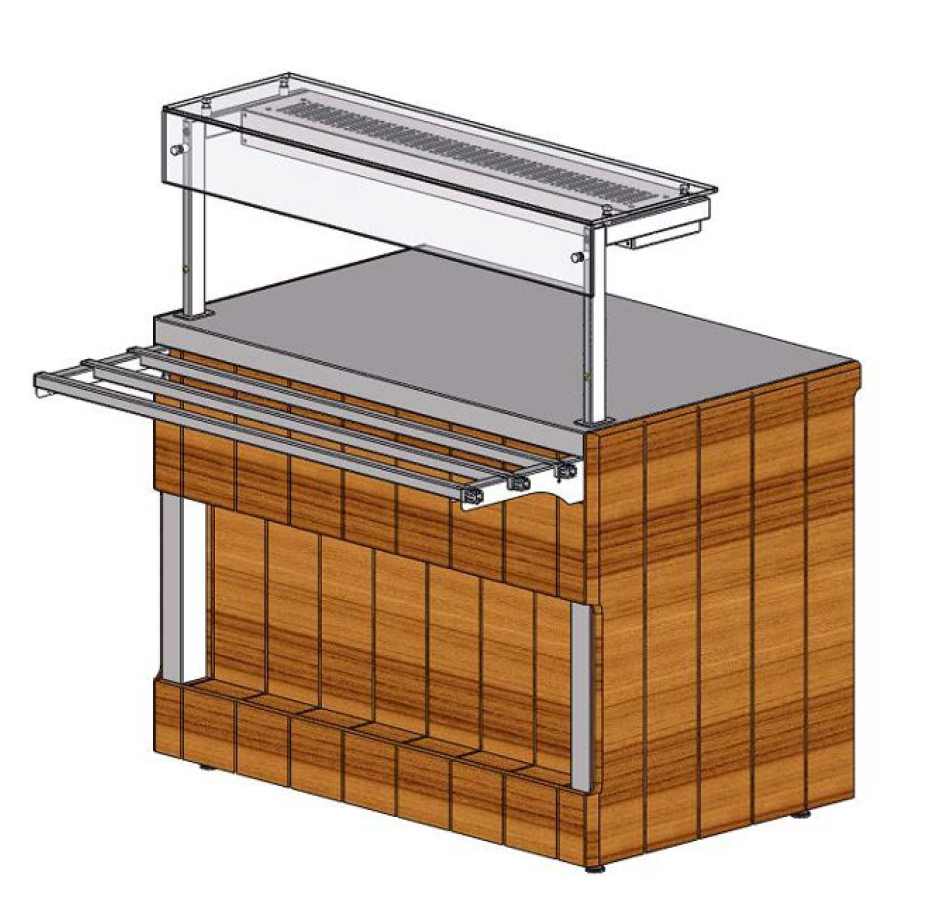 Прилавок тепловой с индукционными конфорками относится к линии раздачи «Kids» торговой марки «Refettorio». Прилавок предназначен для длительного поддержания в горячем состоянии пищи и тепловой обработки пищевых полуфабрикатов в специально разработанных для индукционных плит функциональных емкостях и, используется в качестве вспомогательного модуля. Столешница из нержавеющей стали. Мощность одной конфорки - 3,5 кВт. Количество конфорок в прилавке - 1шт. Оснащен полкой и защитным стеклом. Максимальная распределенная нагрузка на стеклянную полку 15кг. Имеет светодиодную подсветку в нише фасадной части и подсветку рабочей зоны. Со стороны персонала в прилавке есть ниша для инвентаря и розетки с защитной крышкой. Как дополнительная опция ниша может быть снабжена створчатой дверкой. В стандартный комплект поставки направляющая и фасады не входят (доп. опция). Ширина прилавка, указанная в ее наименовании, не учитывает ширину фасадов. Полный габаритный размер по ширине указан в чертеже общего вида прилавка.