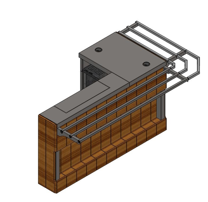 Прилавок Г-образный кассовый относится к линии раздачи «Kids» торговой марки «Refettorio». Прилавок предназначен для установки на него кассового аппарата для расчета с клиентами. Модуль выполнен в Г-образной форме, отсутствует левая стенка. Столешница из нержавеющей стали. Прилавок имеет правое исполнение (направление потока справа на лево). Для удобства подключения кассовых приборов в нише прилавка вмонтированы две розетки с защитными крышками. На столешнице прилавка имеется две заглушки под кабель-канал. Предусмотрены специальные полки для размещения системного блока персонального компьютера. Имеет светодиодную подсветку в нише фасадной части. Как дополнительная опция прилавок может включать встроенный съемный денежный ящик, запираемый на ключ. В стандартный комплект поставки направляющая и фасады не входят (доп. опция).