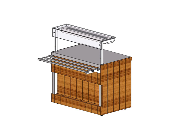 Мармит с инфракрасным нагревом относится к Линии раздачи «Capital» торговой марки «Refettorio». Мармит предназначен для поддержания температуры готовых блюд перед раздачей на таких объектах как: рестораны, кафе, столовые, фудкорты и т. д. Столешница из искусственного камня. Мармит оснащён стеклянной полкой со встроенным инфракрасным излучателем. Температурный диапазон на поверхности стола 40-60 С°. Имеет светодиодную подсветку в нише фасадной части и подсветку рабочей зоны. В стандартный комплект поставки боковые фасады не входят (доп. опция).