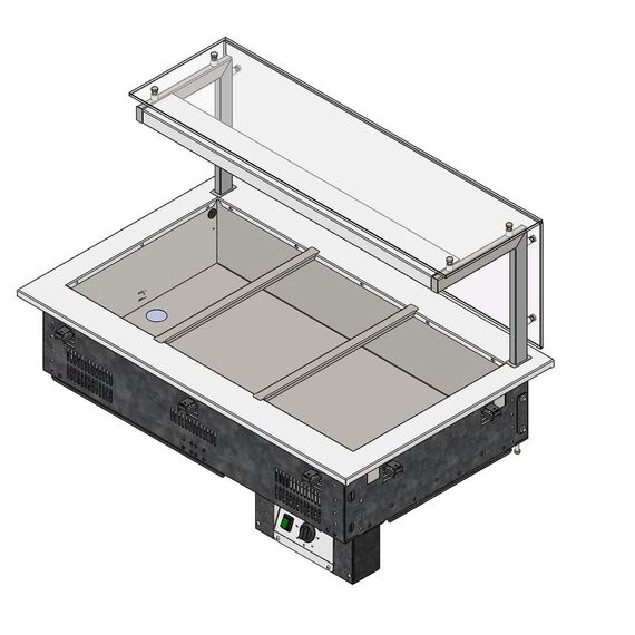 Мармит для вторых блюд встраиваемый относится к линии «Drop IN» торговой марки «Refettorio». Столешница - нержавеющая сталь. Теплоноситель паровой. Тип электронагревательного устройства - пластинчатый электронагреватель (ПЭН). Мармит оснащен стеклянной полкой. Максимальная распределенная нагрузка на стеклянную полку 10кг.