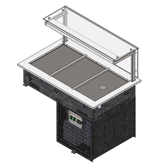 Прилавок холодильный встраиваемый относится к линии «Drop IN» торговой марки «Refettorio». Предназначен для кратковременного хранения пищевых продуктов, демонстрации и раздачи холодных закусок и третьих блюд. Столешница с углублением в 20 мм для установки функциональных емкостей. Столешница из нержавеющей стали. Класс прилавка высокотемпературный (от 1° до 10). Холодообеспечение встроенное. Тип оттаивания: естественный. Мармит оснащен стеклянной полкой. Максимальная распределенная нагрузка на стеклянную полку 10кг.