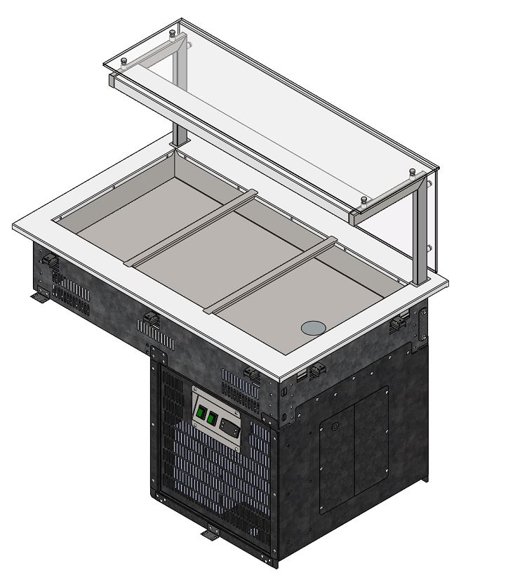 Прилавок холодильный встраиваемый относится к линии «Drop IN» торговой марки «Refettorio». Предназначен для кратковременного хранения пищевых продуктов, демонстрации и раздачи холодных закусок и третьих блюд. Столешница с углублением в 20 мм для установки функциональных емкостей. Столешница из нержавеющей стали. Класс прилавка высокотемпературный (от 1° до 10). Холодообеспечение встроенное. Тип оттаивания: естественный. Мармит оснащен стеклянной полкой. Максимальная распределенная нагрузка на стеклянную полку 10кг.