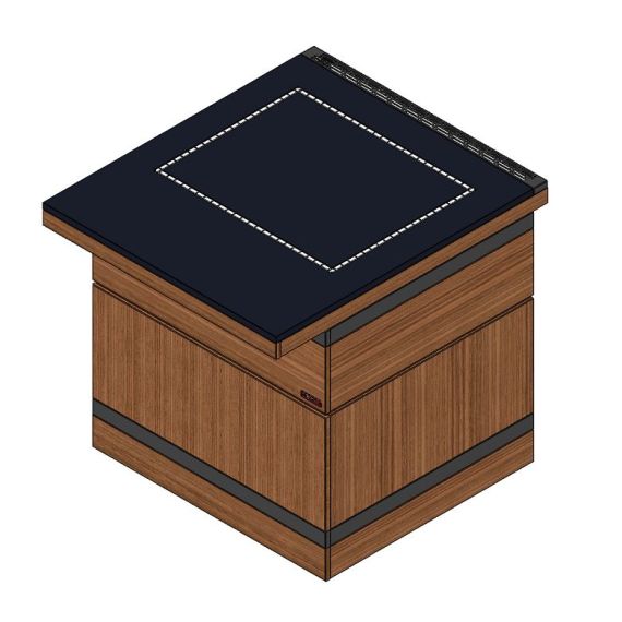 Модуль идет без полки, забор воздуха происходит со стороны персонала (ставят линию не к стене), сплошной фасад.