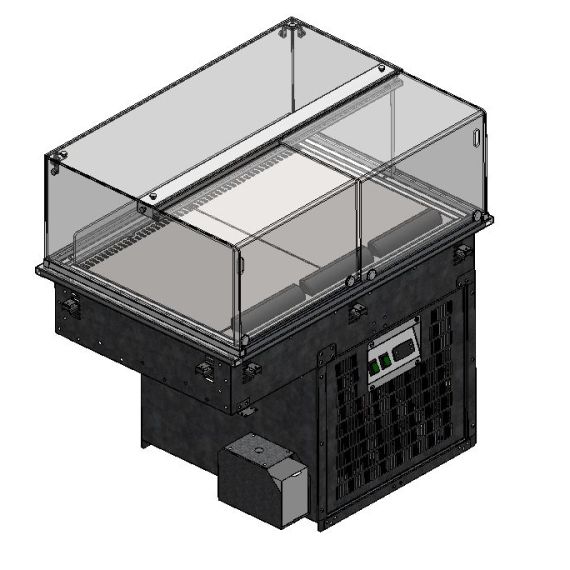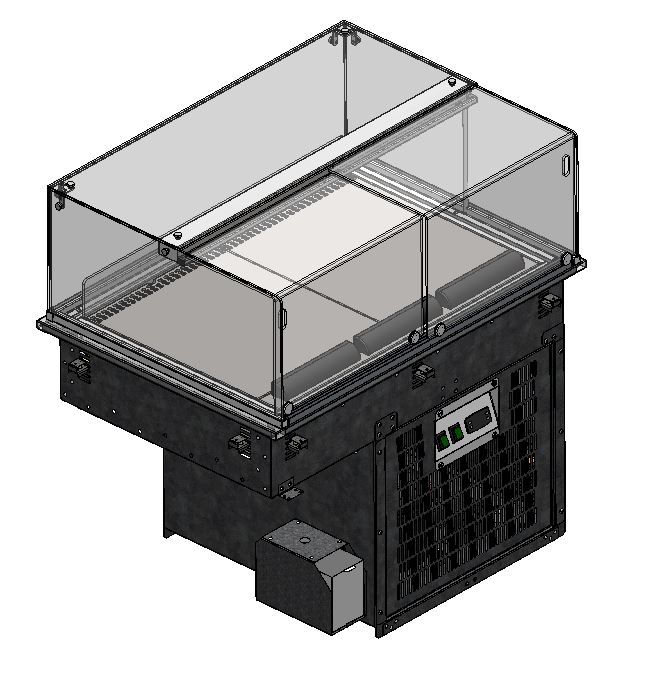 Прилавок холодильный с закрытым доступом к продуктам относится к линии «Drop IN» торговой марки «Refettorio». Прилавок является встраиваемым оборудованием. Класс прилавка среднетемпературный от 2° до 8. Доступ к продуктам со стороны рабочего персонала осуществляется с помощью раздвижных створок. Способ охлаждения внутреннего объёма прилавка - динамический. Для лучшей демонстрации продукции предусмотрено освещение рабочей зоны.