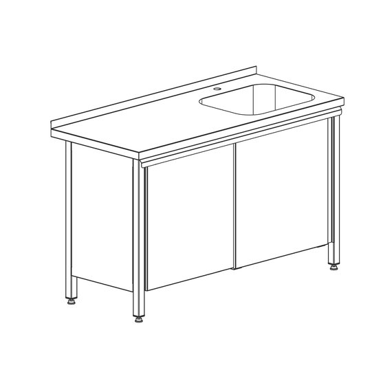 Серия СТПНШ: стол-тумба с дверьми-купе имеет сварную неразборную конструкцию. Каркас выполнен из профильных элементов нерж. стали марки AISI 430 толщиной 1,2мм, ножки из нерж. трубы 40х40 марки AISI 430. Столешница тумбы с цельнотянутой ванной из нерж. стали марки AISI 430 толщиной 0,8мм и усилена подложкой из ДСП толщиной 16мм. Имеет задний борт. Двери-купе, боковые стенки, основание выполнены из нерж. стали марки AISI 430 толщиной 0,8мм. Промежуточная полка внутри тумбы отсутствует. Задняя стенка выполнена из оцинкованной стали толщиной 0,8мм. Стол-тумба оснащен регулируемыми по высоте опорами.