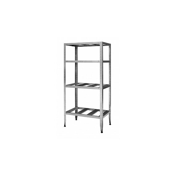 Серия СКНР 2: разборная конструкция, 4 решетчатые полки из нерж. стали марки AISI 430, толщиной 1,2 мм. Стойки из нерж. стали толщиной 1,5 мм. Стойки имеют отверстия с шагом 50 мм, обеспечивая установку полок на удобной высоте и регулируемые по высоте опоры. Габариты: 600*600*1700.