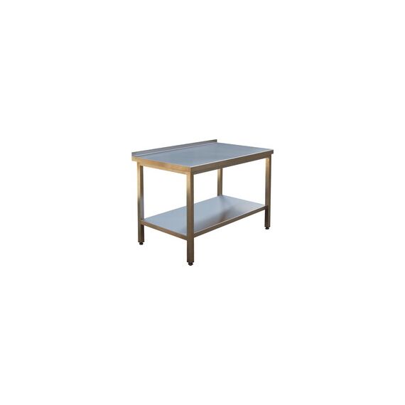 а также в качестве вспомогательной поверхности для кухонного оборудования: разборная конструкция, какркас выполнен из профильных элементов оцинкованной. стали толщиной 0,8 и 1,5 мм. Столешница выполнена с бортом (пристенного типа) из нерж. стали марки AISI 430 толщиной 0,6 мм и усилена подложкой из ДСП толщиной 16мм. Полка сплошная. Стол оснащен регулируемыми по высоте опорами. Габариты 1500*600*860 мм.