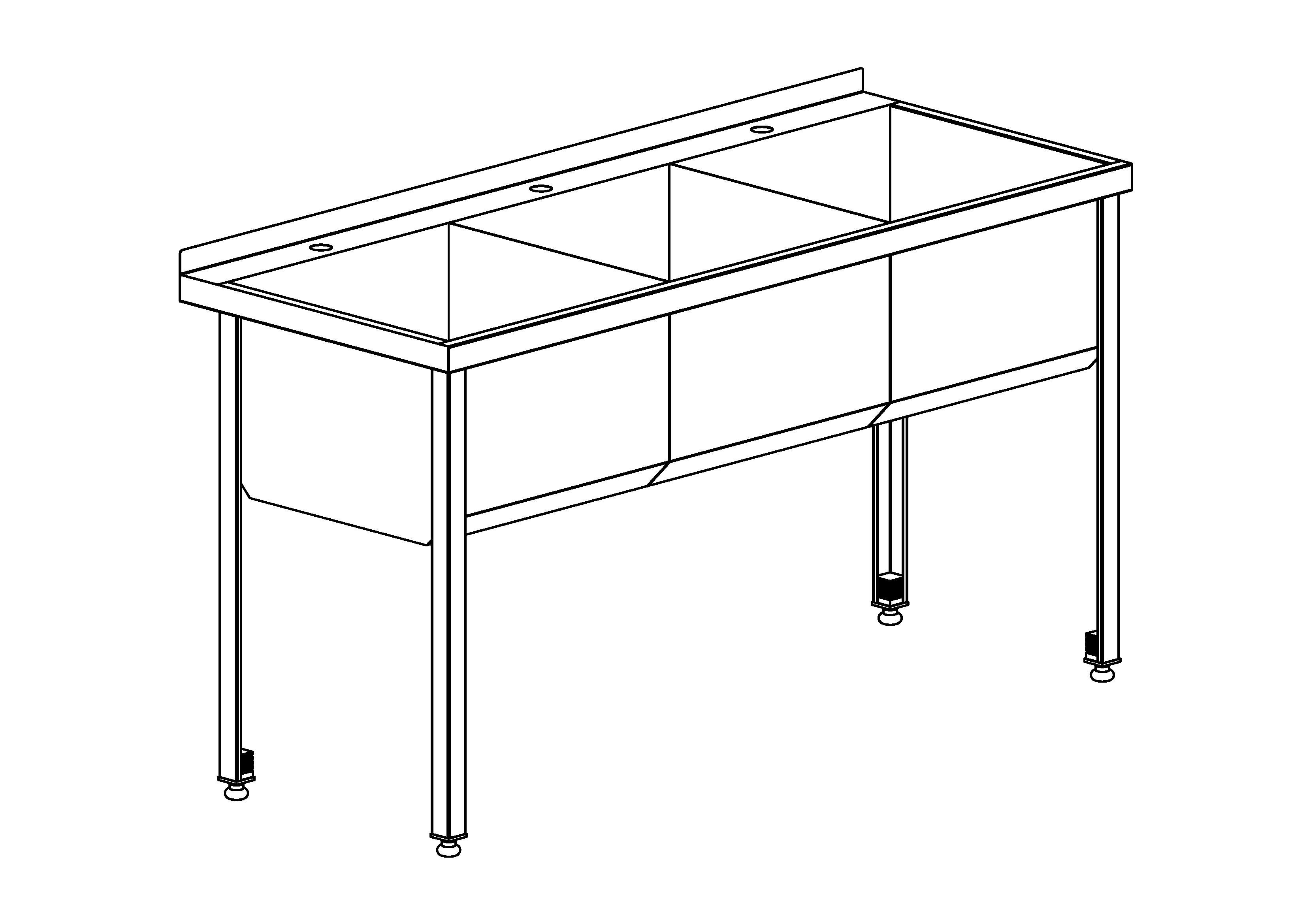 Ванна моечная с бортом трёхсекционная. Емкость ванны сварная, выполненная из нержавеющей стали марки AISI 201, толщиной 0,8 мм. Имеет скошенное дно для удобства санитарной обработки. Размер секции - 550х550х350 мм. Имеет задний борт с отверстием под смеситель ф35 мм. Имеется отверстие для слива ф52 мм. Ножки съемные из нержавеющей стали толщиной 1,5 мм, с регулируемыми по высоте опорами. Смеситель и слив в комплект не входят.