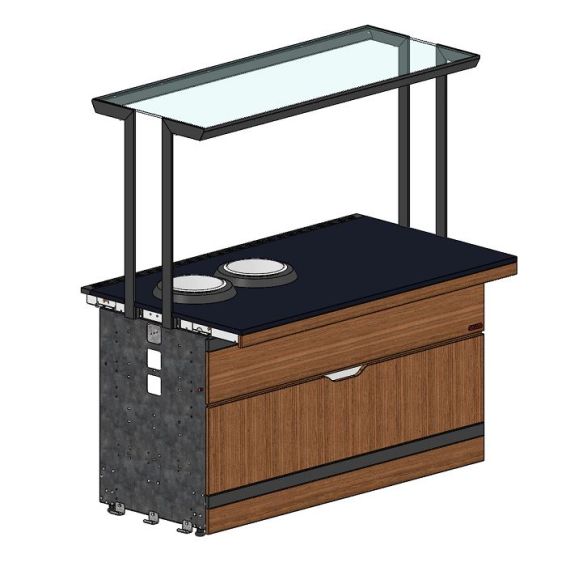 Нестандарт: Увеличенная высота полки - 700мм от столешницы до полки, глубина модуля 860мм, 2 супницы с левой стороны, лицевой фасад с ящиком. Мармит для первых блюд относится к Шведским столам «Filin» торговой марки «Refettorio». Мармит предназначен для поддержания в горячем состоянии емкостей с первыми блюдами и раздачи их потребителю. Исполнение - пристенное. Вместимость супницы - 10 литров. Электросупницы - 2шт. Терморегулятор от 0 до 95С°. Мармит оснащён стеклянной полкой. Максимальная распределенная нагрузка на стеклянную полку 10кг. Имеет светодиодную подсветку в нише фасадной части и подсветку рабочей зоны. В стандартный комплект поставки боковые фасады не входят (доп. опция). В комплект входит фасад ящиком - Я.