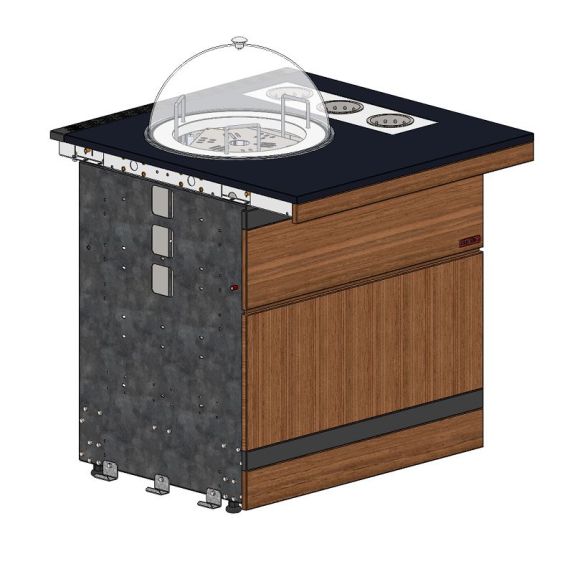 Нестандарт: глубина прилавка 860мм Прилавок диспенсер для тарелок тепловой относится к Шведским столам «Filin» торговой марки «Refettorio». Диспенсер предназначен для обеспечения клиентов тарелками. Исполнение - пристенное. Столешница из искусственного камня. Диспенсер снабжен выталкивающим устройством - лифт и тремя стакнами для столовых приборов, расположенных справа. Количество лифтов - 1шт. Шахта лифта оснащена подогревом. Тип электронагревательного устройства – трубчатый электронагреватель (ТЭН). Режим терморегулирования от 30 до 90°С. В стандартный комплект поставки боковые фасады не входят (доп. опция). В комплект входит крышка-купол из оргстекла и фасад сплошной из МДФ - С.