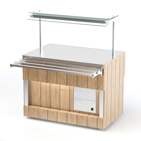 Прилавок нейтральный относится к относится к Шведским столам «Capital» торговой марки «Refettorio». Прилавок используется в качестве вспомогательного элемента. Исполнение - пристенное. Столешница из нержавеющей стали. Прилавок оснащён стеклянной полкой. Максимальная распределенная нагрузка на полку 15кг. Имеет светодиодную подсветку в нише фасадной части и подсветку рабочей зоны. В стандартный комплект поставки направляющая и фасады не входят (доп. опция). Ширина прилавка, указанная в ее наименовании, не учитывает ширину фасадов. Полный габаритный размер по ширине указан в чертеже общего вида прилавка.