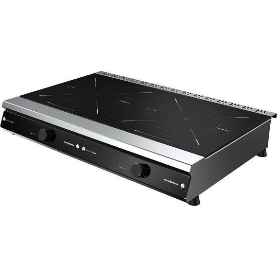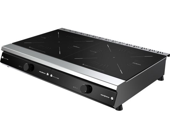 Плита электрическая индукционная настольная, модель ICD9 - 2 PRO (серия 900) имеет 2 конфорки. Мощность одной конфорки - 3,5 кВт. Площадь поверхности конфорки - 0,144 м2. Размер рабочей поверхности (стеклокерамика) 380х380мм. Толщина рабочей поверхности 6 мм. Номинальная потребляемая мощность плиты - 7 кВт. Уровни ручного регулирования мощности от 1 до 9; Уровни регулирования температуры 40-240. Номинальное напряжение 220 В. Время закипания 1л воды (диаметр кастрюли 24см), не более 2-х минут. Функция проверки пригодности используемой посуды. Количество жироулавливающих фильтров - 2шт. Использовать специально предназначенную для индукционных плит посуду, которая имеет основание днища диаметром не менее 12см. Корпус плиты электрической индукционной выполнен полностью из нерж. cтали марки AISI 430 толщиной 1,2мм. Одна конфорка плиты имеет режим контроля температуры продукта по выносному датчику (термощуп). Термощуп входит в стандартную комплектацию.