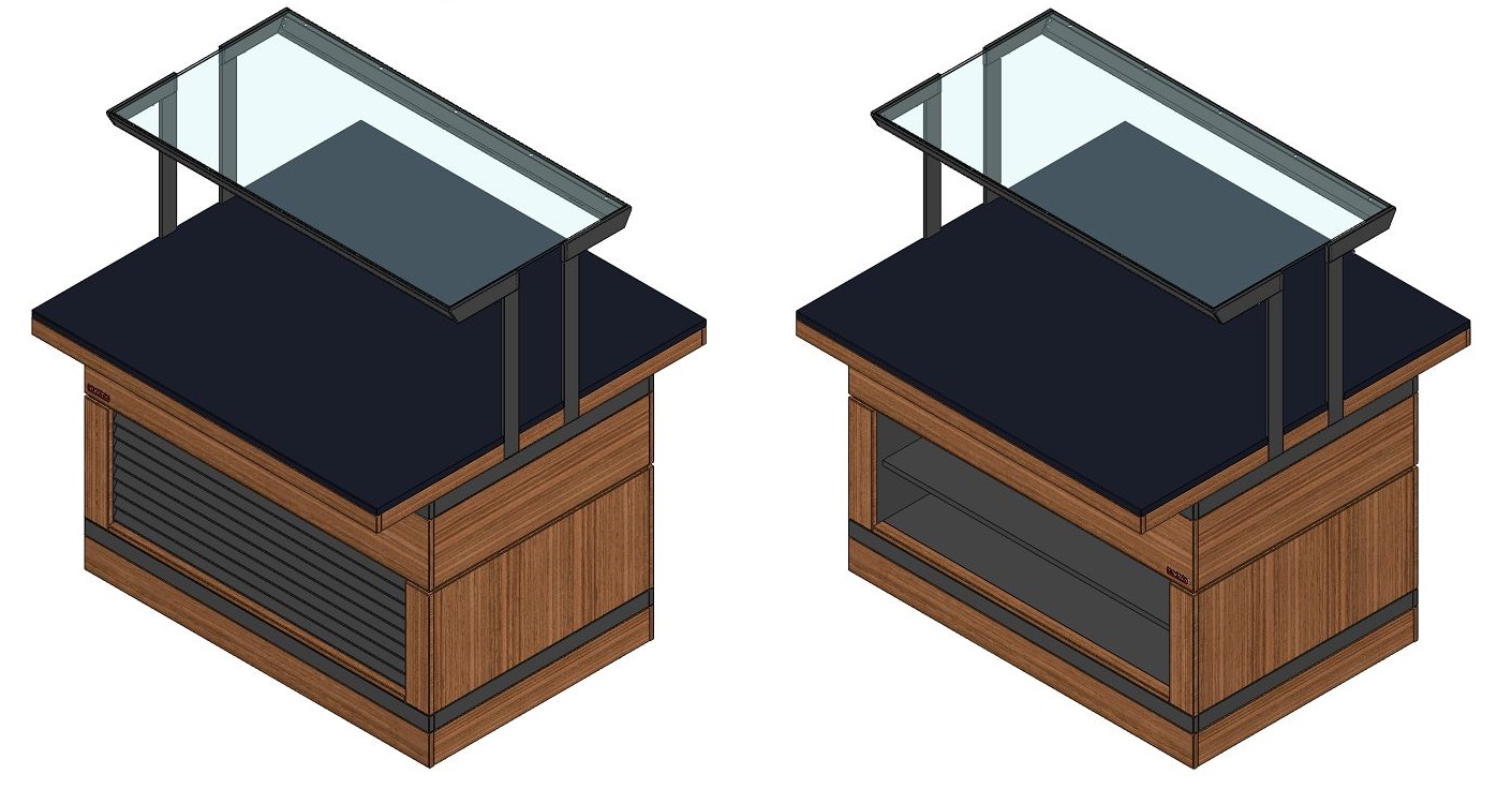 Прилавок нейтральный относится к относится к Шведским столам «Filin» торговой марки «Refettorio». Прилавок используется в качестве вспомогательного элемента. Исполнение - островное. Столешница из искусственного камня. Прилавок оснащён стеклянными полками. Максимальная распределенная нагрузка на стеклянную полку – 10 кг. Максимальная распределенная нагрузка на столешницу прилавка – 100 кг. Имеет светодиодную подсветку фасадной части и подсветку рабочей зоны. Фасадные части могут быть с жалюзи или нишей. В стандартный комплект поставки фасады не входят (доп. опция).