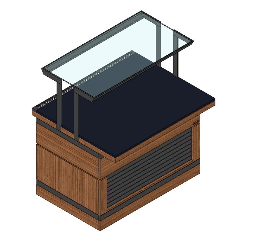 Прилавок нейтральный относится к относится к Шведским столам «Filin» торговой марки «Refettorio». Прилавок используется в качестве вспомогательного элемента. Исполнение - пристенное. Столешница из искусственного камня. Прилавок оснащён стеклянными полками. Максимальная распределенная нагрузка на стеклянную полку – 10 кг. Максимальная распределенная нагрузка на столешницу прилавка – 100 кг. Имеет светодиодную подсветку фасадной части и подсветку рабочей зоны. Фасадные части могут быть с жалюзи или нишей. В стандартный комплект поставки фасады не входят (доп. опция).