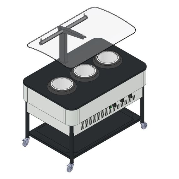 Мармит для первых блюд относится к Шведским столам «Furshet» торговой марки «Refettorio». Мармит предназначен для поддержания в горячем состоянии емкостей с первыми блюдами и раздачи их потребителю. Мармит передвижной, оснащен колесами. Исполнение - островное. Вместимость супницы - 10 литров. Электросупницы - 3шт. Терморегулятор от 0 до 95С°. Мармит оснащён стеклянной полкой над столешницей. Снизу модуля имеется металлическая полка. Имеет светодиодную подсветку рабочей зоны. В стандартный комплект поставки фасады не входят (доп. опция).