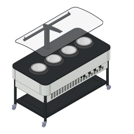 Мармит для первых блюд относится к Шведским столам «Furshet» торговой марки «Refettorio». Мармит предназначен для поддержания в горячем состоянии емкостей с первыми блюдами и раздачи их потребителю. Мармит передвижной, оснащен колесами. Исполнение - островное. Вместимость супницы - 10 литров. Электросупницы - 4шт. Терморегулятор от 0 до 95С°. Мармит оснащён стеклянной полкой над столешницей. Снизу модуля имеется металлическая полка. Имеет светодиодную подсветку рабочей зоны. В стандартный комплект поставки фасады не входят (доп. опция).