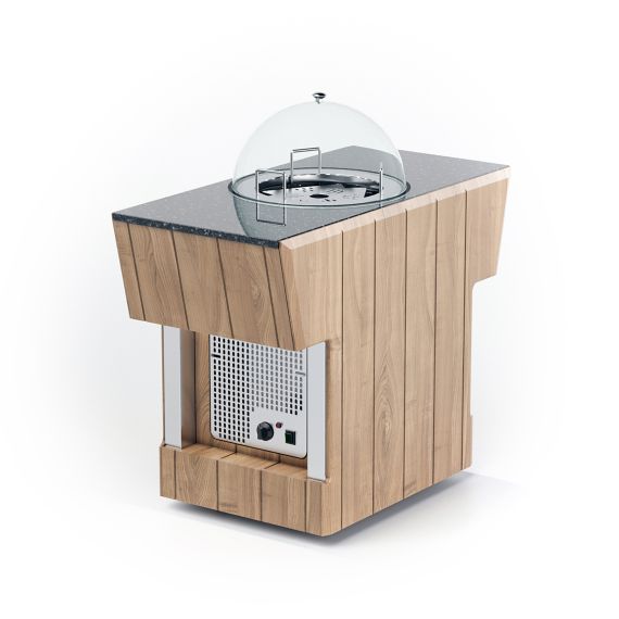 Прилавок диспенсер для тарелок тепловой относится к Шведским столам «Kids» торговой марки «Refettorio». Диспенсер предназначен для обеспечения клиентов тарелками. Исполнение - островное. Столешница из искусственного камня. Диспенсер снабжен выталкивающим устройством - лифт. Шахта лифта оснащена подогревом. Тип электронагревательного устройства – трубчатый электронагреватель (ТЭН). Режим терморегулирования от 30 до 90С°. В комплект входит крышка-купол из оргстекла. Имеет светодиодную подсветку фасадной части. Может комплектоваться столешницами-вставками (доп. опция). В стандартный комплект поставки фасады не входят (доп. опция).