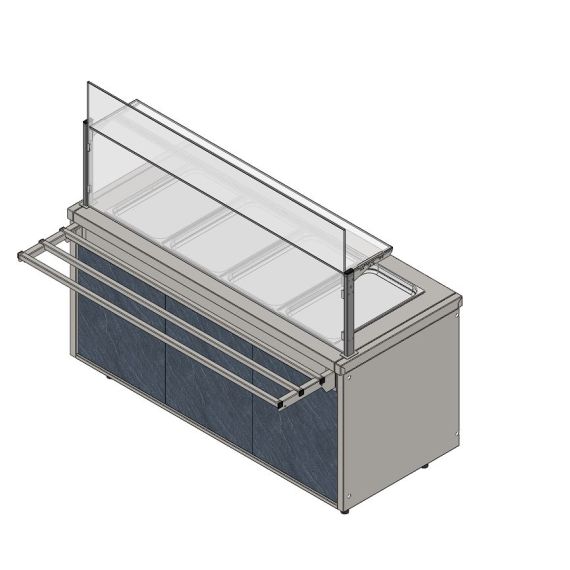 Мармит для вторых блюд относится к линии раздачи «City» торговой марки «Refettorio». Мармит предназначен для кратковременного хранения в горячем состоянии вторых блюд в функциональных емкостях и раздачи их потребителю. Теплоноситель паровой. Тип электронагревательного устройства - пластинчатый электронагреватель (ПЭН). Мармит оснащен защитным экраном и полкой. Максимальная распределенная нагрузка на стеклянную полку 10кг. Имеет светодиодную подсветку рабочей зоны. Со стороны персонала в мармите есть ниша для инвентаря.