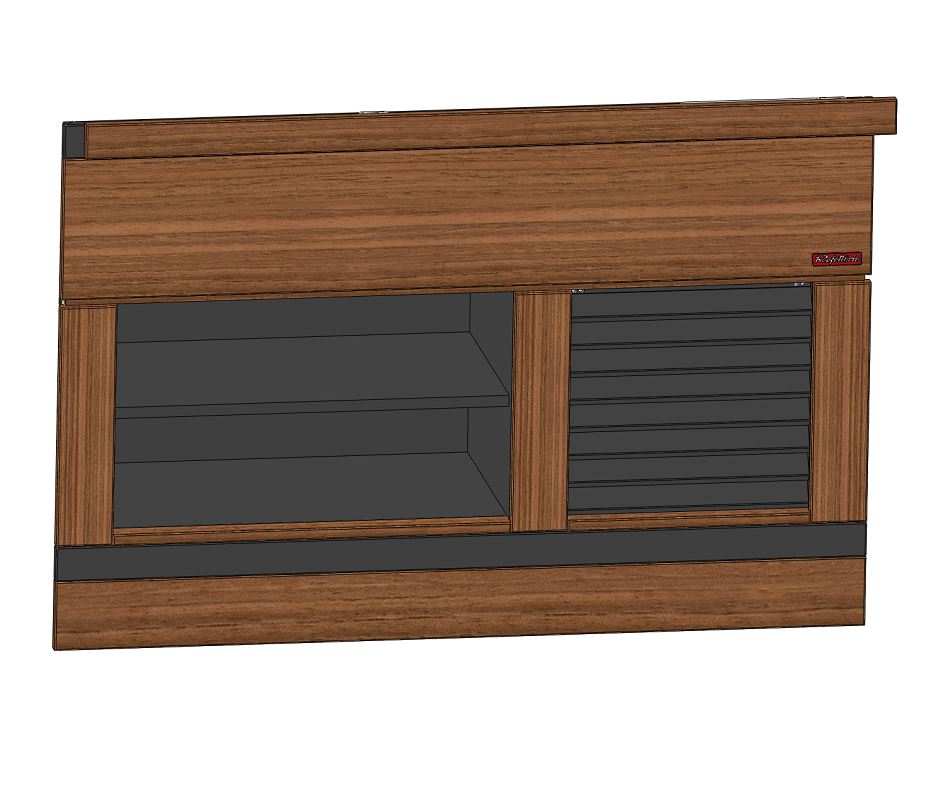 Комплект фасадов лицевой комбинированный с нишей и жалюзи предназначен для модулей шведских столов «Filin» длиной 1475мм. Ниша и жалюзи в чёрном цвете. Материал фасадных панелей – МДФ. В комплект входит фасад для одной стороны модуля, подходит для островного, пристенного и сдвоенного исполнения.